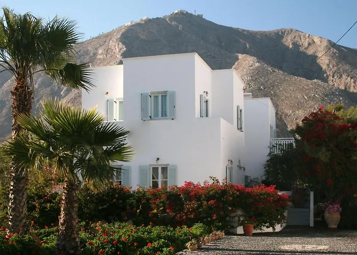 Spiros & Hiroko Hotel - Adults Only Perissa met 10 kamers heeft een buitenzwembad en ligt in de Perissa Beach wijk op korte rijafstand van 15 minuten van het Wijnmuseum Koutsoyannopoulos. Er is een gedeelde lounge op het terrein.